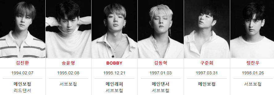 특이하게도 iKON은 리드보컬 포지션이 없다. 있다고 치면 김동혁이나 송윤형이 리드보컬이라고 보아도 무방할듯.